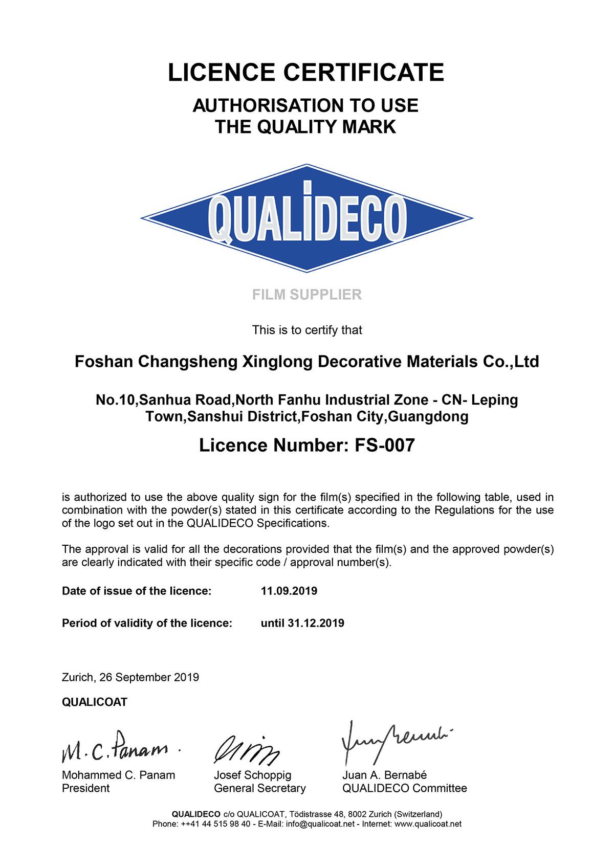 熱烈祝賀長(zhǎng)盛興隆成為通過(guò)QUALIDECO認(rèn)證的轉(zhuǎn)印紙/膜生產(chǎn)工廠,證書號(hào)為FS-007。
